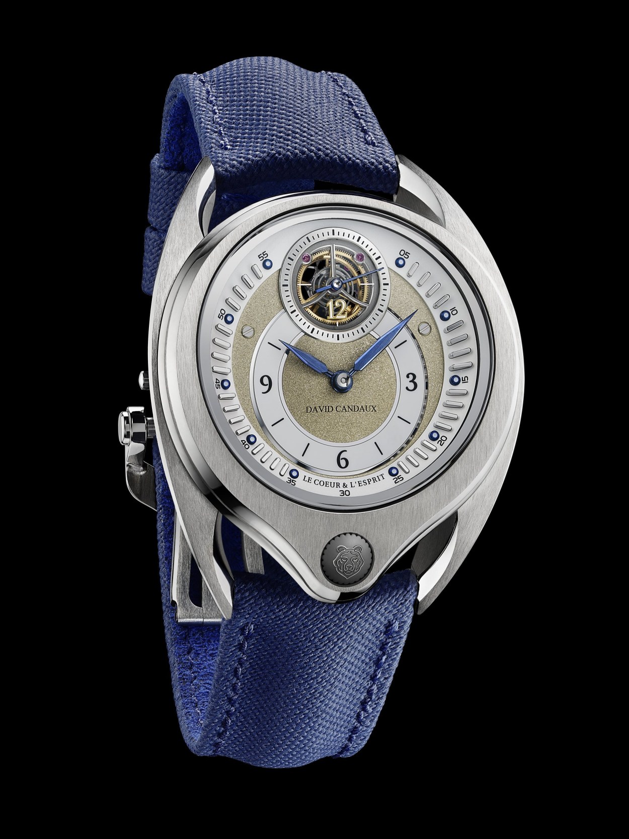 Embossed with the iconic Bear Head logo, Candaux’s “magic crown” has a highly ergonomic design. The the curved case combined with a handmade rubber strap featuring a velcro clasp ensure perfect comfort on the wrist, ready for the adventurous soul who prefers to chart his own course.