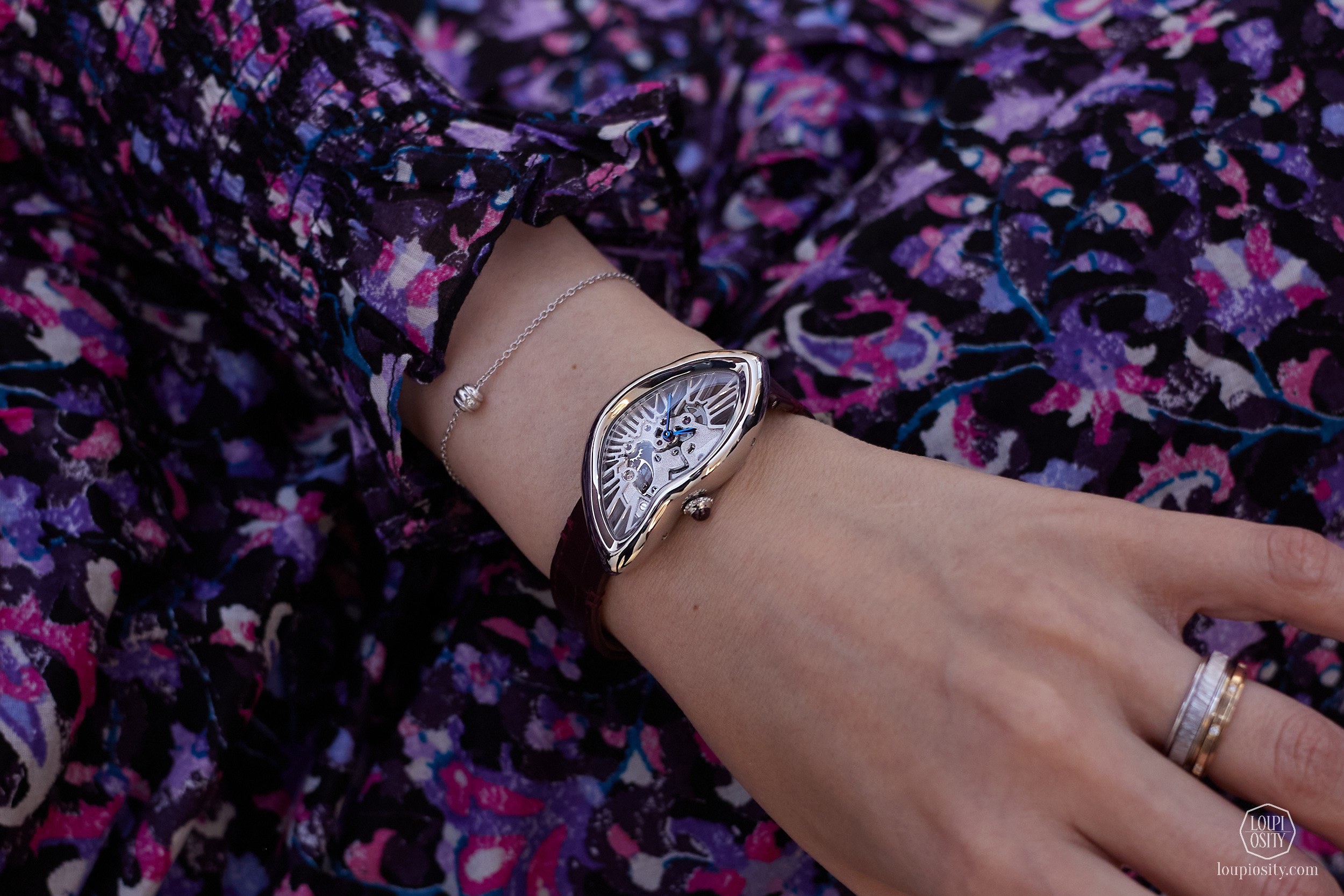 The Crash Squelette represents the collection’s centerpiece. Created in 1967 during Swinging London, the Crash revolutionized watchmaking aesthetics with its asymmetrical dial (find beautiful early pieces in our coverage from the Cartier ‘Rare Watches’ exhibition in Geneva and the Phillips Geneva Watch Auction: XX). The 2026 version features a skeletonized Manufacture 1967 MC movement where bridges are shaped like Roman numerals. Each bridge is hammered by hand for nearly two hours using traditional decorating techniques. Limited to 150 numbered pieces, this model exemplifies the quest for harmonization between creative freedom and technical exploration.