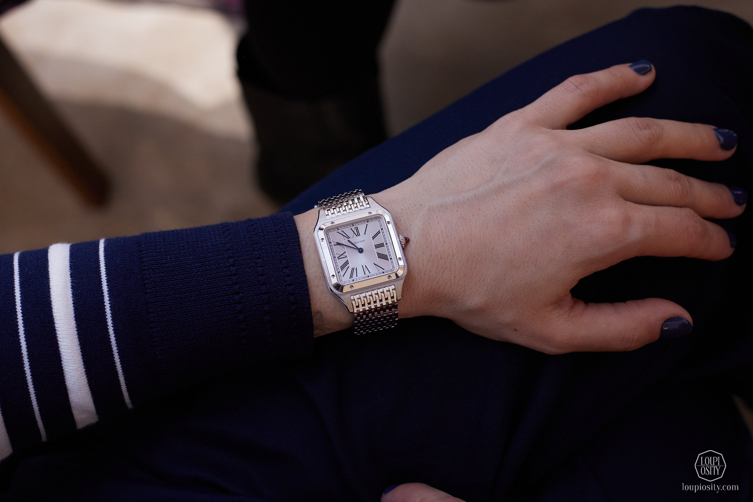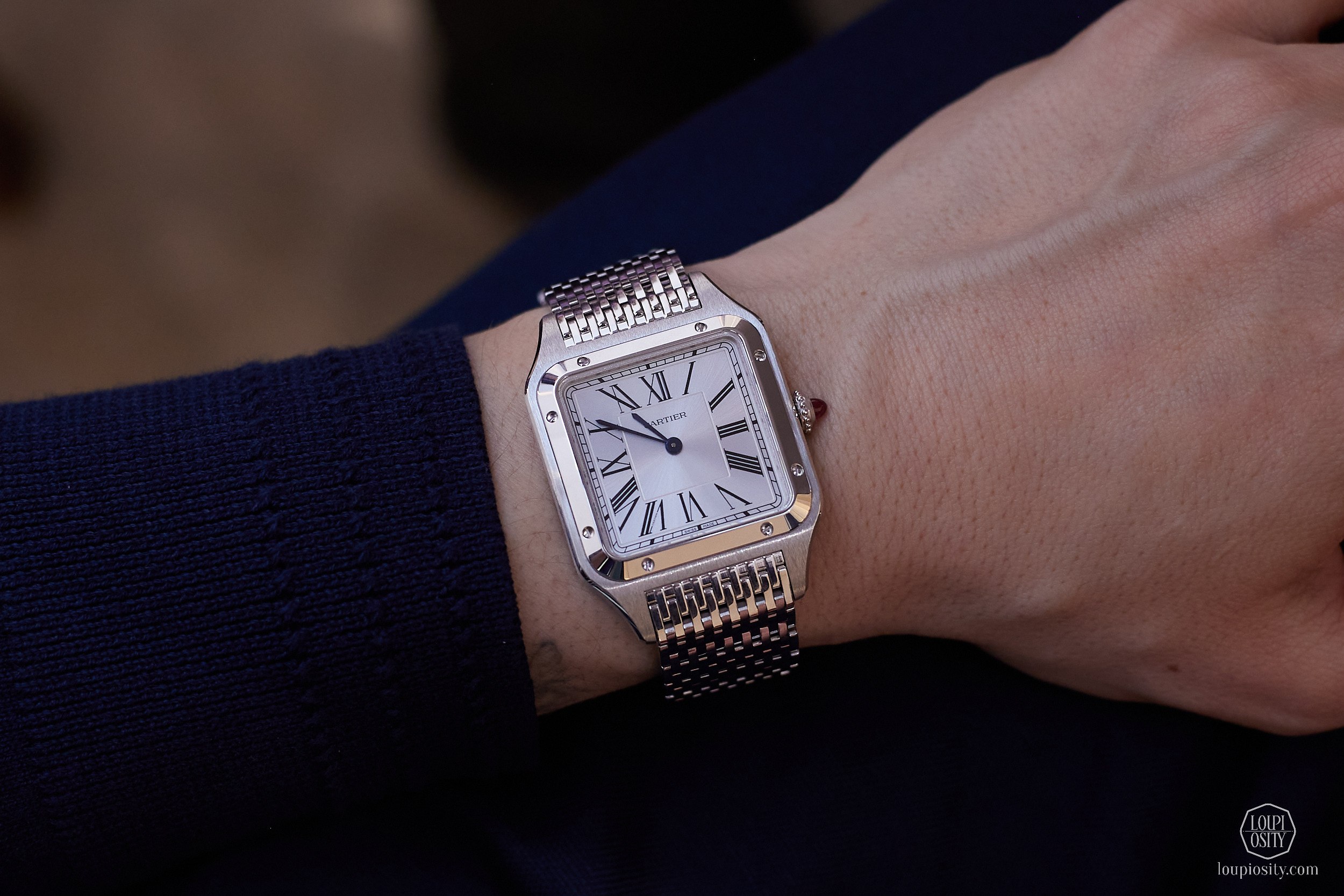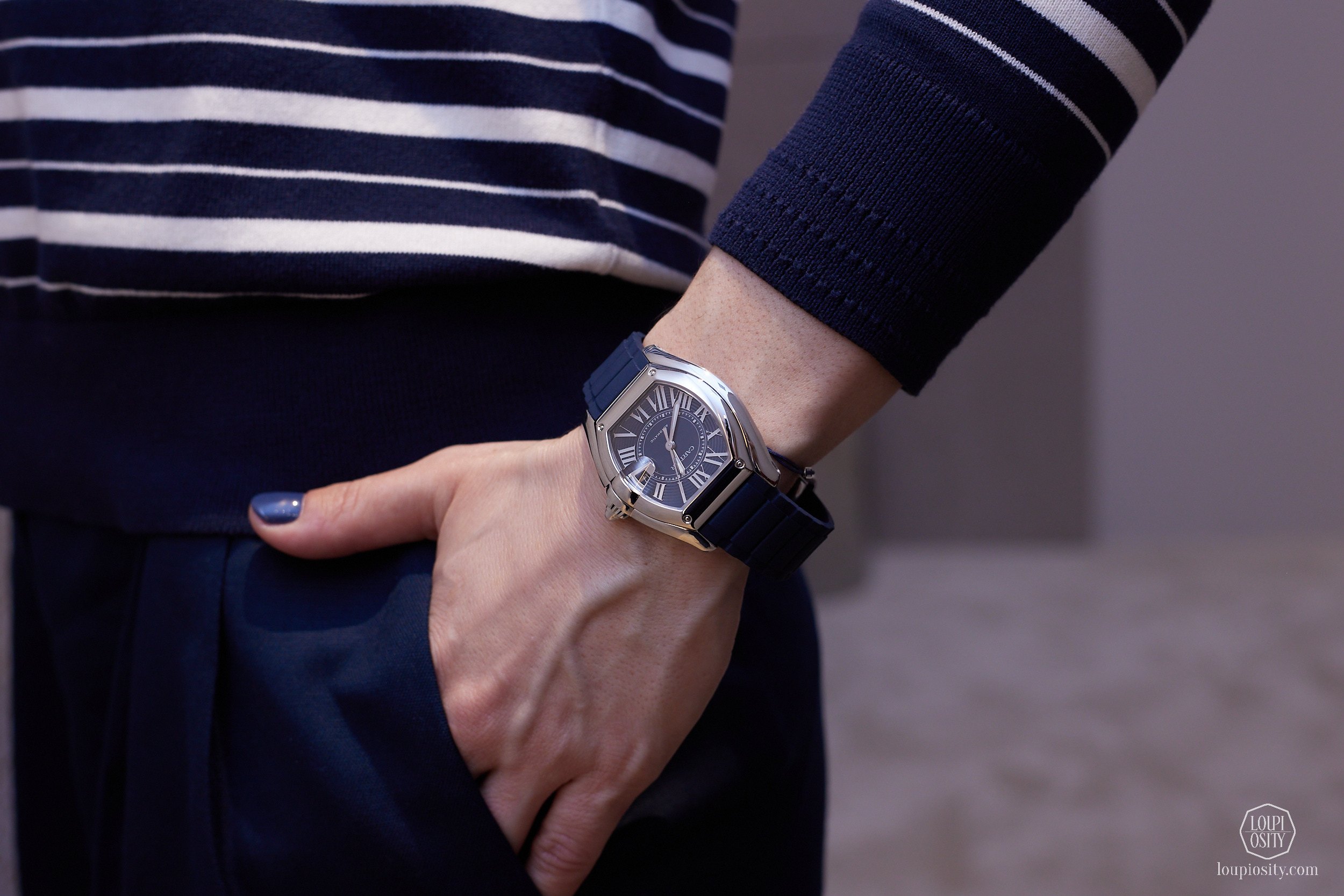 The earlier models had ETA movements. As ETA has only supplied movements to Swatch Group brands since 2020, Cartier created its in-house calibres to replace the earlier ETA movements. The 2026 novelties are equipped with the 1847 MC (MC = Manufacture Calibre) for large models (47 x 38 mm, 10.06 mm thick) and the 1899 MC for medium models (42.5 x 34.9 mm, 9.7 mm thick). The bracelet has been reworked with shorter, more ergonomic links and the patented QuickSwitch™ system for strap interchangeability. Steel versions feature blue or anthracite sword-shaped hands coated with Super-LumiNova®.