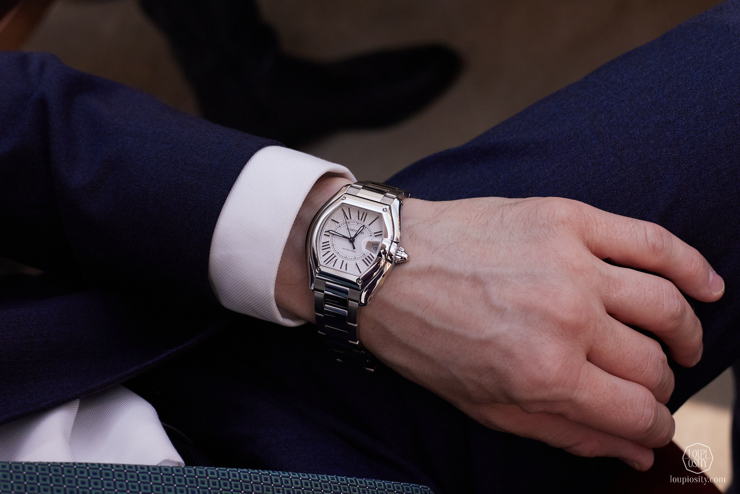 Let us start with the revival of the eye-catching, automotive-inspired Cartier timepiece, the Roadster. It initially debuted in 2002 and borrowed bold codes from mechanical bodywork, featuring a speedometer-inspired dial, conical crown, headlight-shaped date magnifier, and visible rivets. The tonneau-shaped collection, which included time and date pieces in various sizes for men and women, as well as chronographs with horizontally elongated oval sub-dials, was in production for a decade.