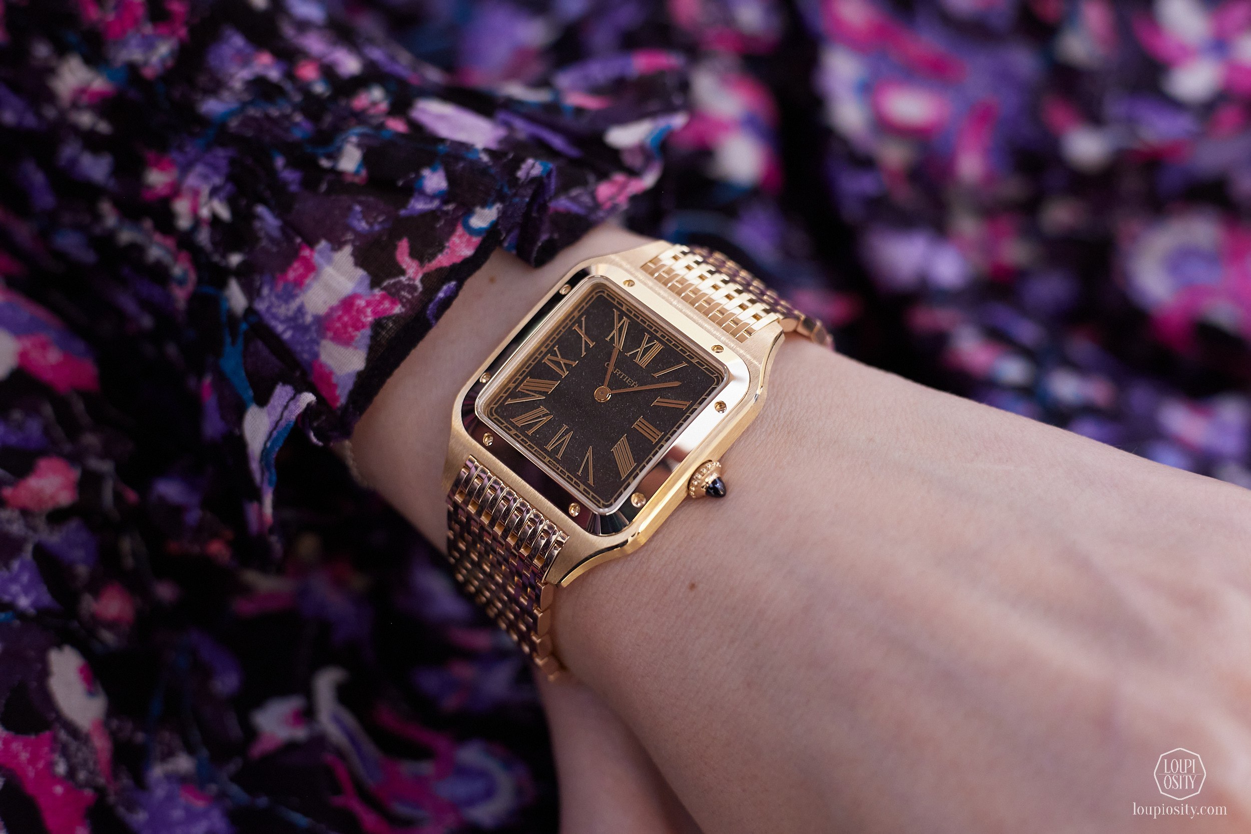 The Santos-Dumont remains one of watchmaking’s most significant milestones. It was the first modern wristwatch designed for flight, created in 1904 for aviator Alberto Santos-Dumont. For 2026, Cartier introduces an LM-size version featuring a dial crafted from gilded obsidian, a volcanic stone from Mexico whose iridescent reflections come from tiny trapped air bubbles. Each piece is unique, with the stone cut to just 0.3 mm depth before being polished to reveal its radiance.