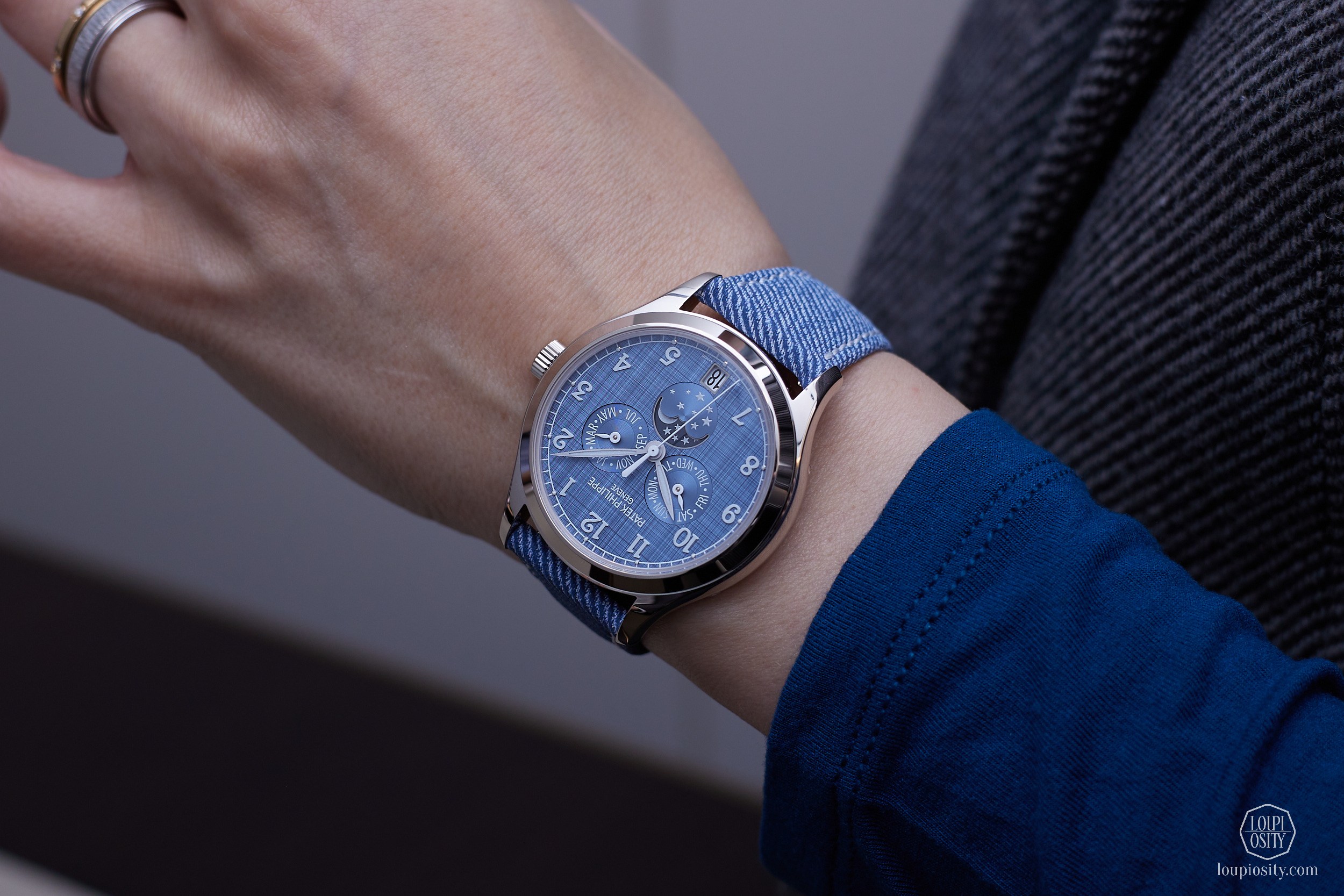 Reference 4946G presents a new colour interpretation of the Annual Calendar, housed in a fully polished white gold case with a diameter of 38 mm. The watch is powered by the caliber 26-330 S QA LU, a self-winding movement that manages the day, month, date, and moon phases, requiring only one correction per year thanks to the mechanism patented in 1996. After the chestnut dial of last year’s 4946R-010 recalling the sheen of raw-silk shantung, the novelty features a blue-gray finish this time with the same double vertical and horizontal satin-brushed texture. This texture is complemented by a blue-gray calfskin leather strap with a denim motif and white contrasting stitching. The sapphire-crystal case back offers a view of the movement, which includes a 21K gold central rotor. This model builds upon the legacy of the Annual Calendar, offering a blend of technical utility and contemporary aesthetic appeal.
