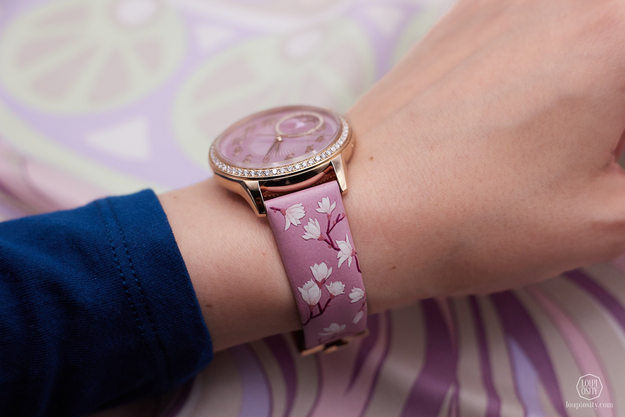 However, the true innovation lies in the strap. For the first time in the Maison’s history, miniature painting is applied to a calfskin strap. Meticulously hand-painted, the strap depicts delicate spring blossoms in soft pinks and whites, creating a ‘magical cloud’ effect that mirrors the seasonal transition. Because of the natural tonal variations in mother-of-pearl and the unique nature of hand-painting, every one of the 100 numbered pieces is subtly distinct.